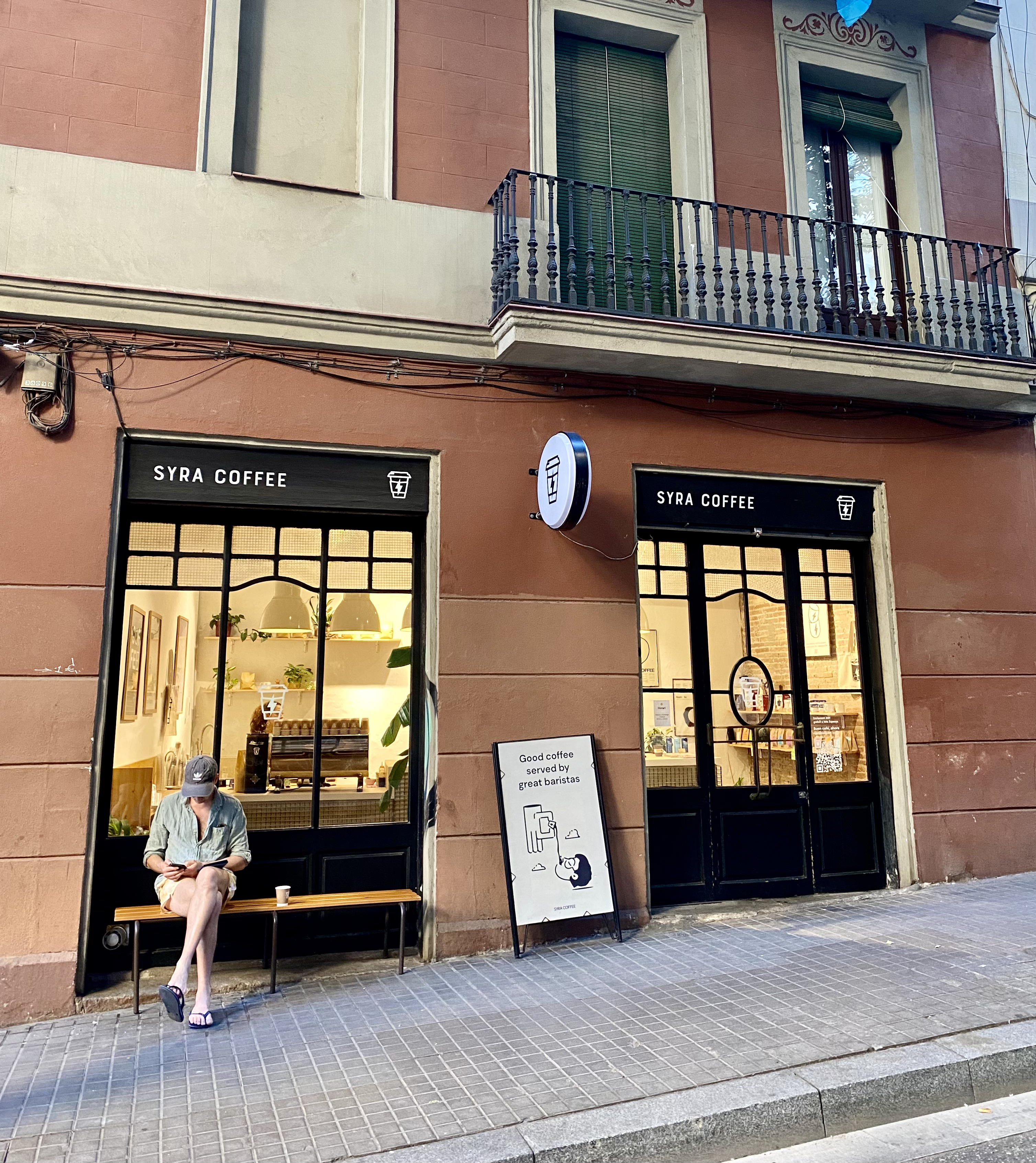 I was in Barcelona with a couple of girlfriends. It was our first morning in the city and we decided to wake up early and go for a walk. If you’ve visited then you’ll know, Barcelona sleeps in. The streets were empty midweek at 8 and the air was humid yet comfortable enough to hike. We left the neighbourhood that our Airbnb was in and quickly got lost in a maze of narrow dark streets, covered in a canopy of trees. And then, a coffee shop- bold, bright, welcoming and so modern in contrast to all of the old gothic buildings around it.